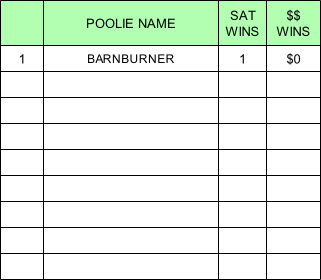 Pick the winning teams each Saturday - Be the Poolie with the most correct wins... & you win the Pool.